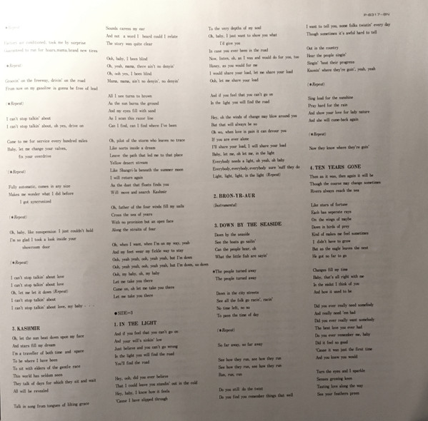 | C4 | Ten Years Gone = テン・イヤーズ・ゴーン | 6:55 | |